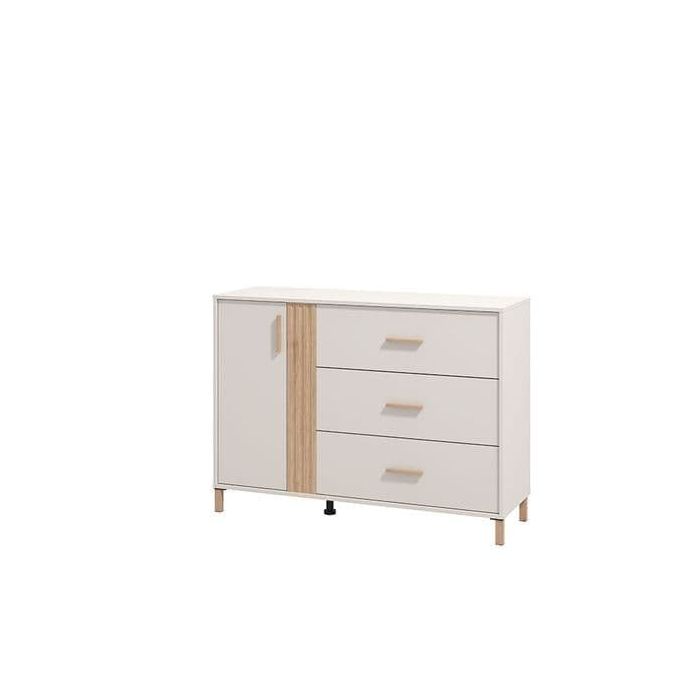 GRANDE White Chest of Drawers - Large-sized, 3 Drawers, 1 Door