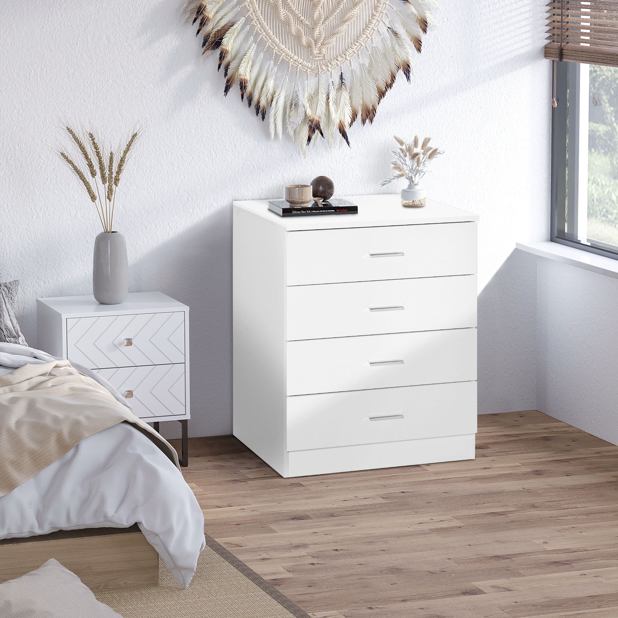 HERON XVII White Chest of Drawers - Small-sized, 4 Drawers