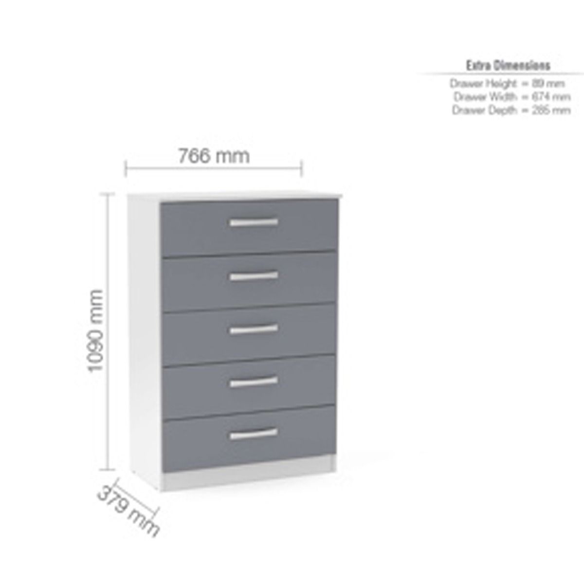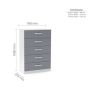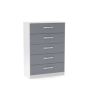 LYTHAM IV White Chest of Drawers - Medium-sized, 5 Drawers