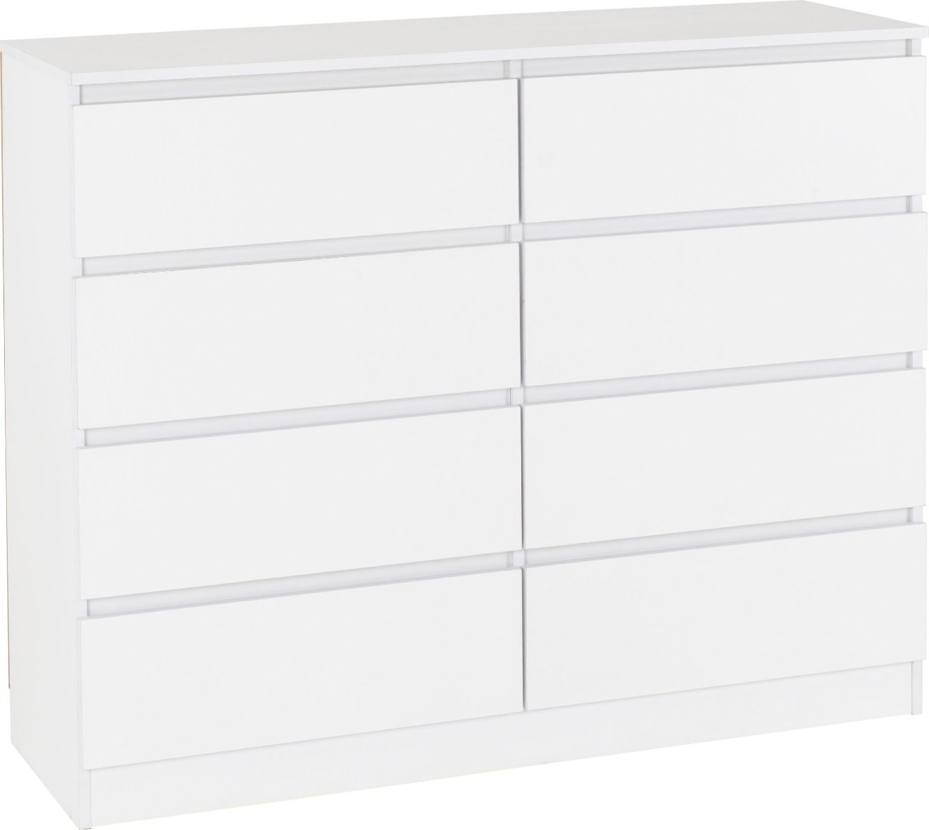 MALDEN White Chest of Drawers - Large-sized, 8 Drawers, Double
