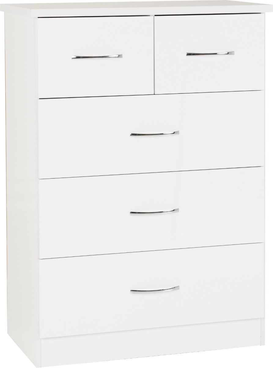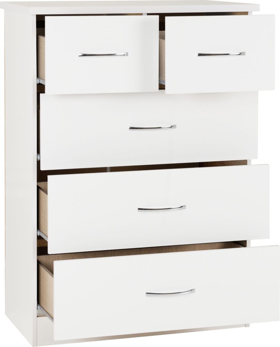 NEWBIGGIN White Chest of Drawers - Medium-sized, 5 Drawers