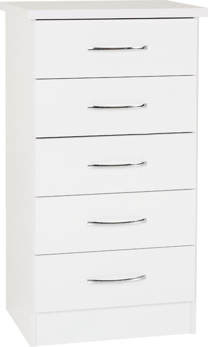 NEWBIGGIN White Chest of Drawers - Tallboy, Small-sized, 5 Drawers
