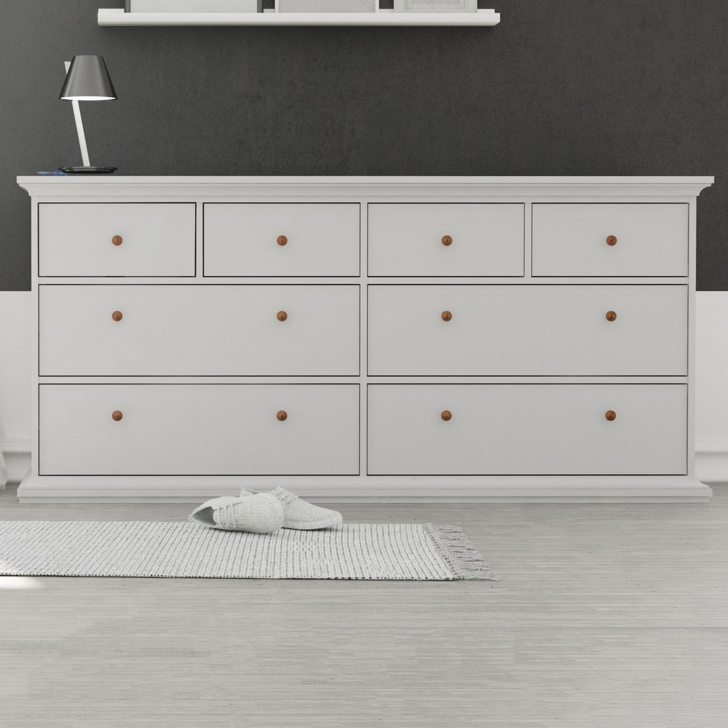 PORTHOPE White Chest of Drawers - Extra Large-sized, 8 Drawers