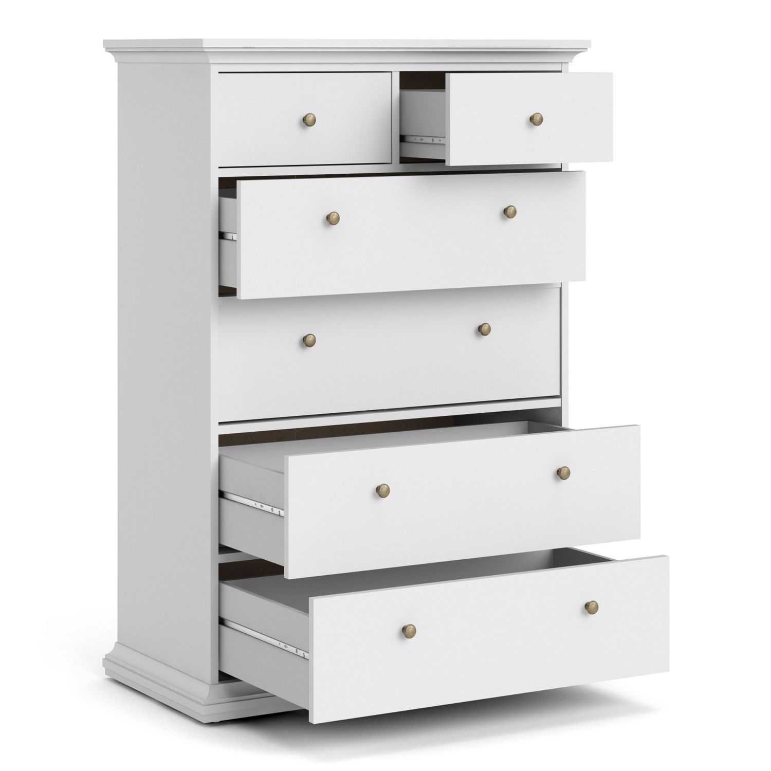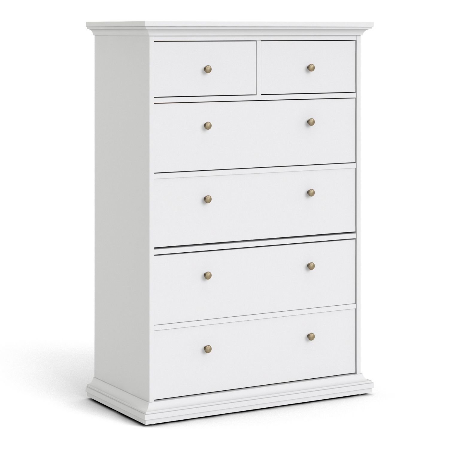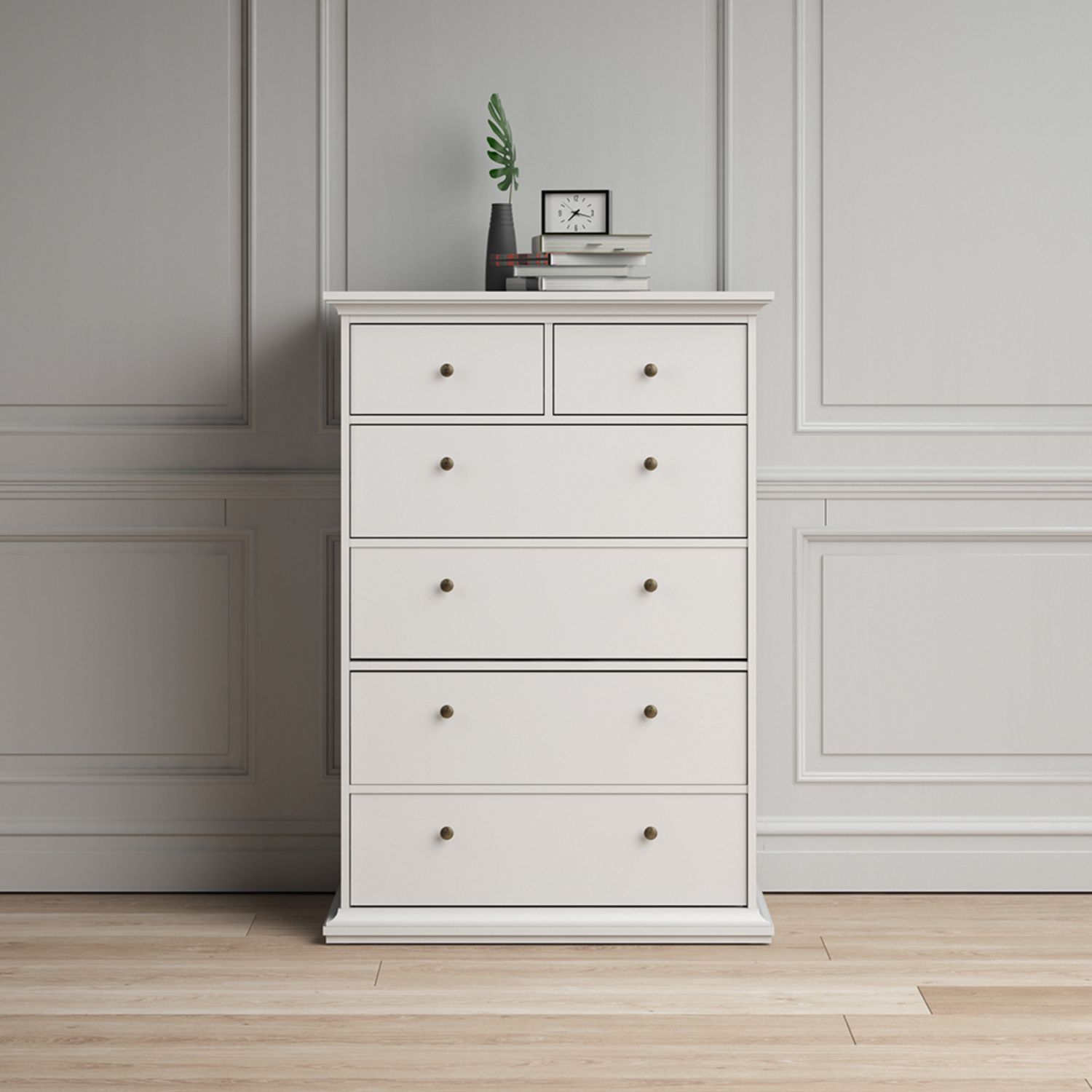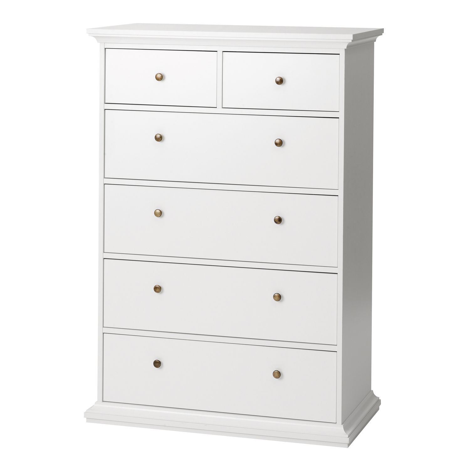 PORTHOPE III White Chest of Drawers - Large-sized, 6 Drawers