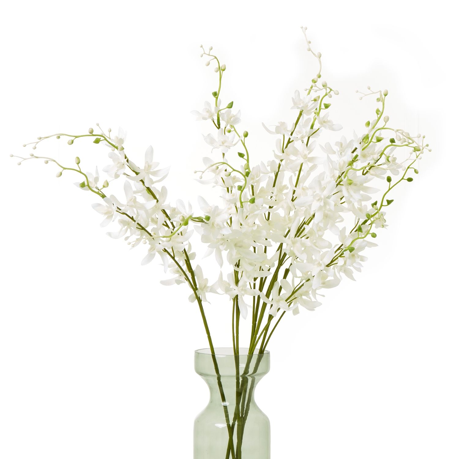 Delicate and sophisticated, the White Cymbidium Spray captivates with its graceful, botanically accurate blooms. This faux floral creates a serene, nature-inspired display that seamlessly complements modern, minimalist, and Scandinavian-inspired interiors. Pair it with other greenery or showcase it alone to add a touch of elegance and tranquility to any space. Versatile and easy to style, this must-have addition will elevate your customers' home décor with its timeless appeal.
