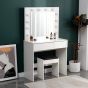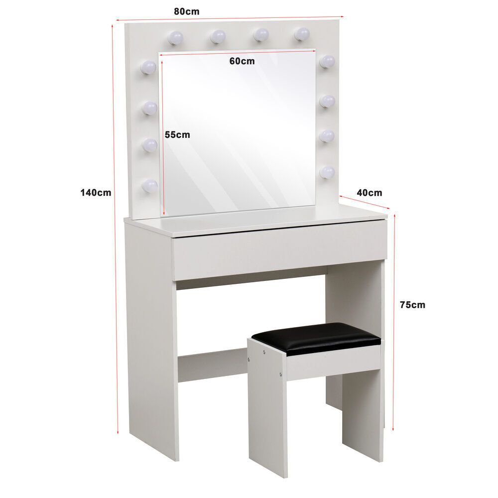 This dressing table comes complete with padded stool which can tuck neatly under the dresser Natural, Warm, Cool 3 energy-efficient Led colour Setting will help you get the best perspective. A Large Drawer provides ample space for items and accessories you wish to keep to hand. A Selection of finishes available to best suit your room