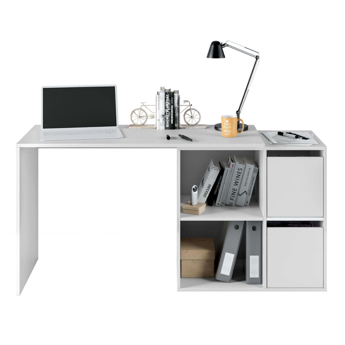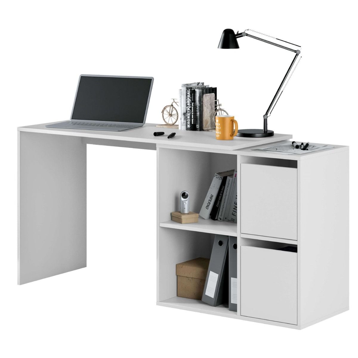 White Reversible Computer Desk with Storage and Handy Cupboards