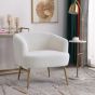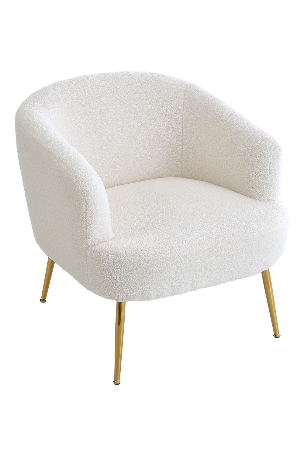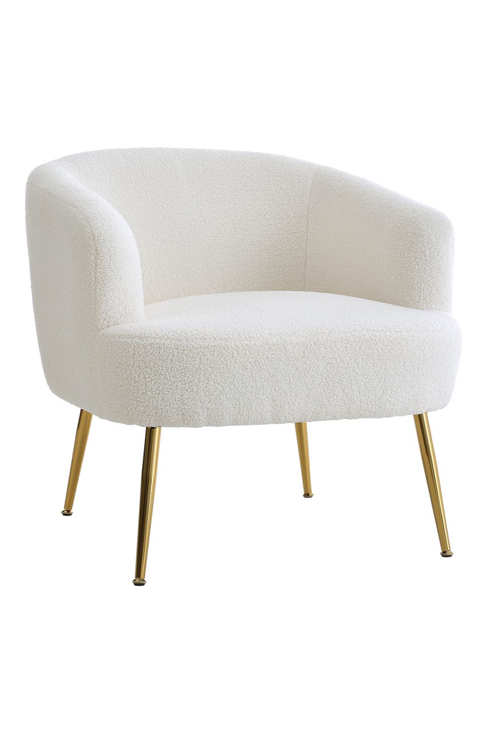 Indulge in the heavenly softness of our White Teddy Fabric Armchair by . Crafted with a sturdy solid wood frame, this armchair boasts a gentle silhouette characterized by rounded arms and a well-padded, dense foam-filled tight back that creates an invitingly plush appearance, perfect for unwinding or diving into a good book. For a touch of modern elegance, the armchair is equipped with four slim, tapered legs set at a stylish slant. Its contemporary profile not only enhances comfort but also makes it an exceptional addition to your living room. Experience the ultimate blend of comfort and style with this armchair that invites you to relax and luxuriate in cloud-like softness