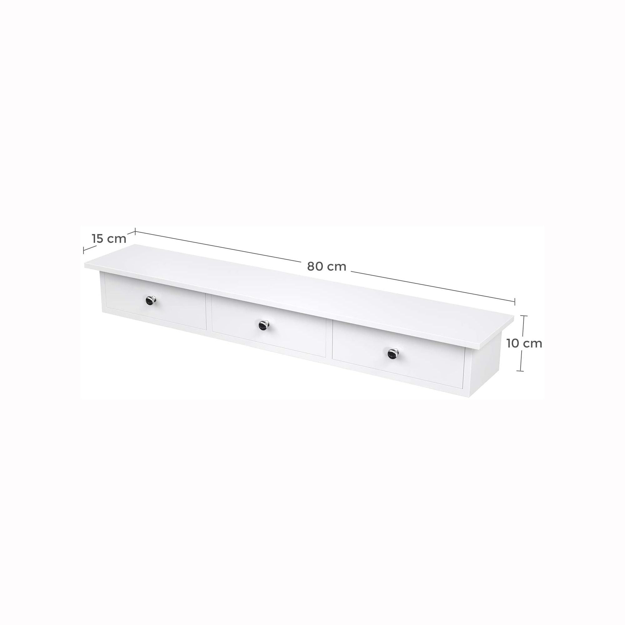 Out of Floor Storage Space? Take a look at your wall! Use this floating shelf in your bedroom to display framed photos, in the kitchen for spice jars, or in the living room for trinkets. It Has the Strength: No flimsy pieces here. Crafted of E1-grade engineered wood, this wall shelf with 3 drawers is strong enough to hold potted plants and heavy decor (max. static load: 15 kg).