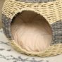 Wicker Cat House, Rattan Raised Cat Bed, Cosy Kitten Cave with Soft Washable Cushion, ?40 x 30cm
