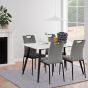 Revel in the sleek sophistication of our rectangular dining table, crowned with a white ceramic top that boasts a unique rough texture. The table's foundation is a matte black steel base, offering both stability and a touch of modernity to your dining space.