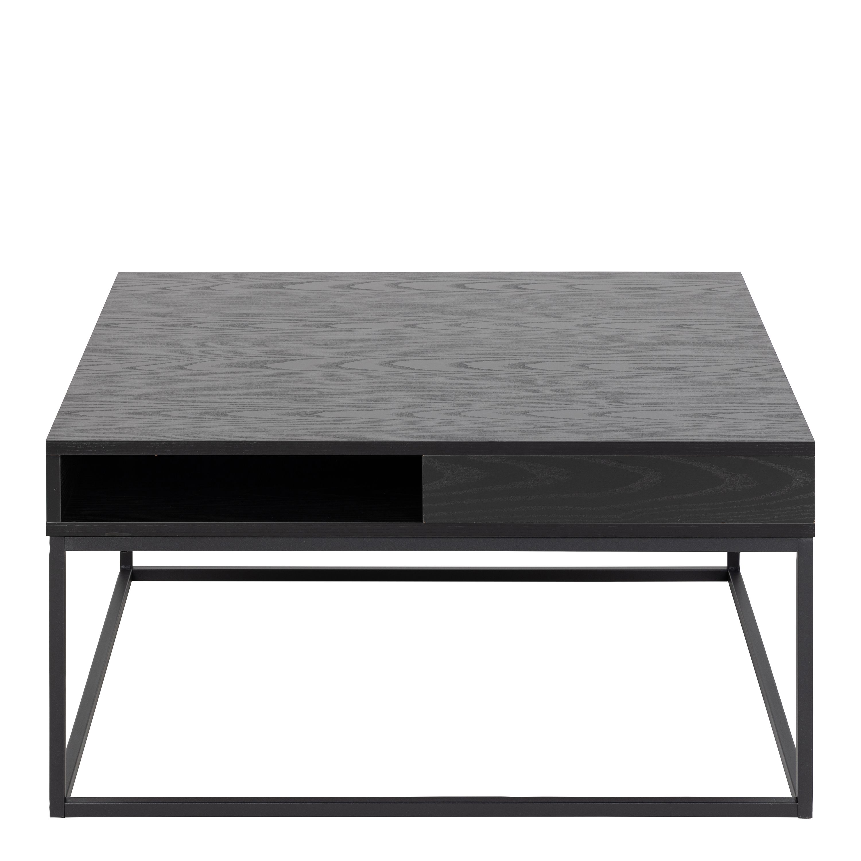 Unveil the essence of modern living with our square coffee table, featuring an ash black rough top for a bold statement. The matte black steel base ensures durability, and the open compartment adds a practical touch to this stylish piece, perfect for contemporary interiors.