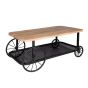 Handmade, industrial style range, crafted by skilled craftsmen in India, perfect to complement and highlight any modern surroundings. A combination of solid wood and metal resulting in a unique and eye-catching piece of furniture. The coffee table features a Mango Wood Table Top and a metal base, complemented with a lattice shelf and the legs are created from 4 decorative wheels.