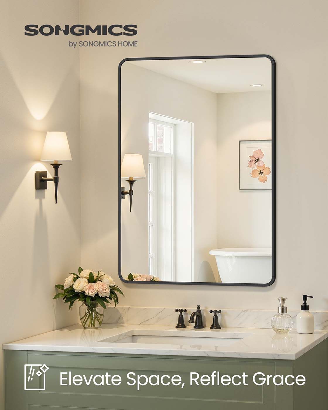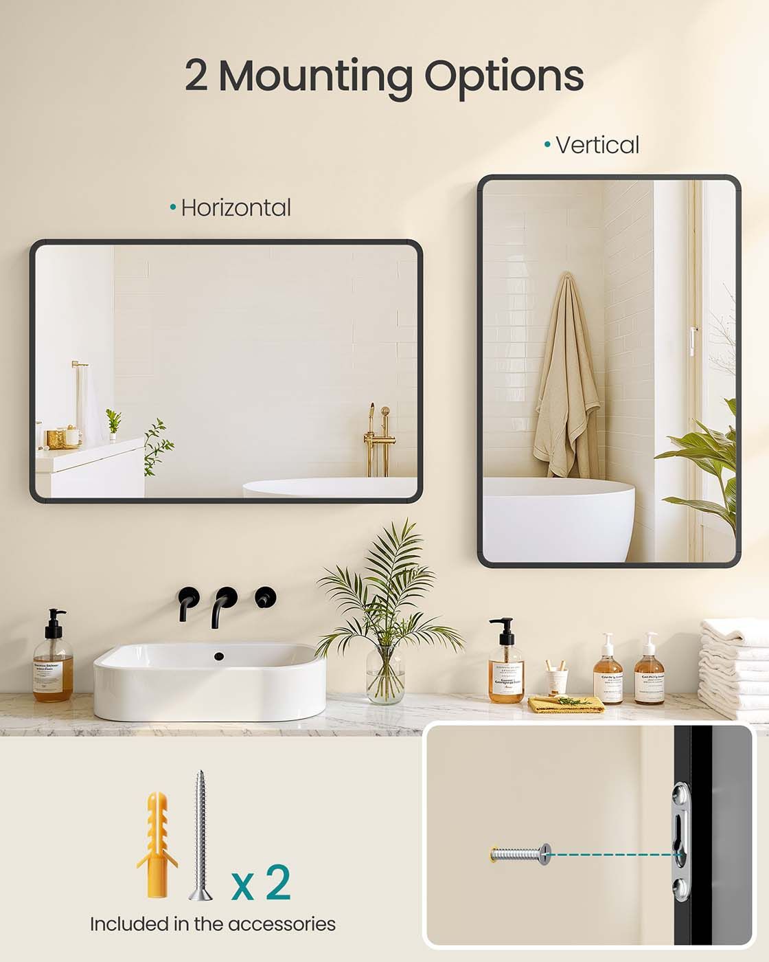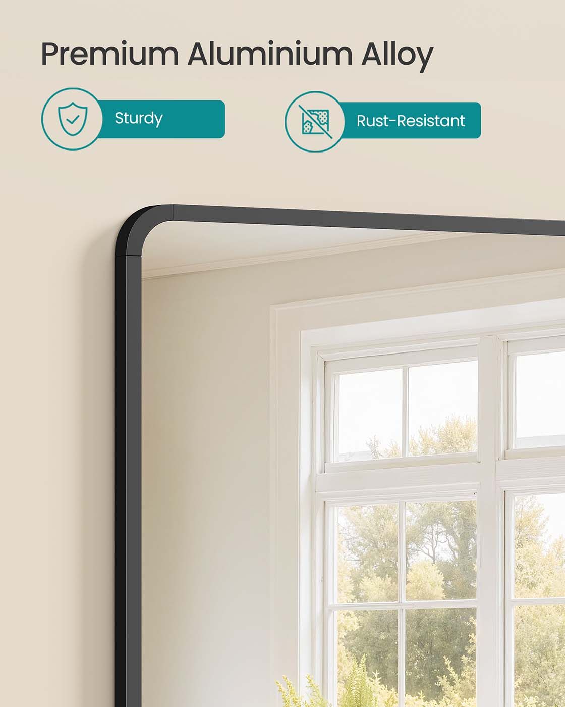 WILLOWFEN Wall Mounted Rectangular Mirror with Aluminium Frame and Safety Film - Black