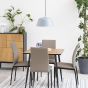 Embrace the rustic charm of our square dining table, which pairs a textured wild oak effect top with a sleek matte black steel base. The table's compact design and contemporary flair make it an ideal choice for intimate dining spaces that crave a touch of modernity.