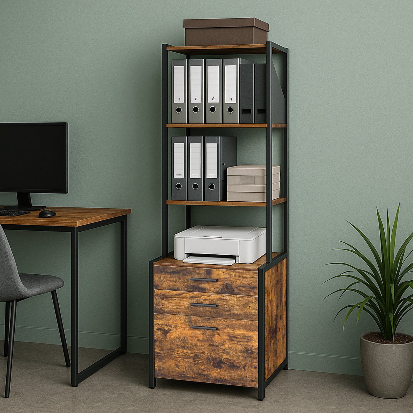 WINDLOWE 3 Drawer Filling Cabinet with Adjustable Shelves - Brown
