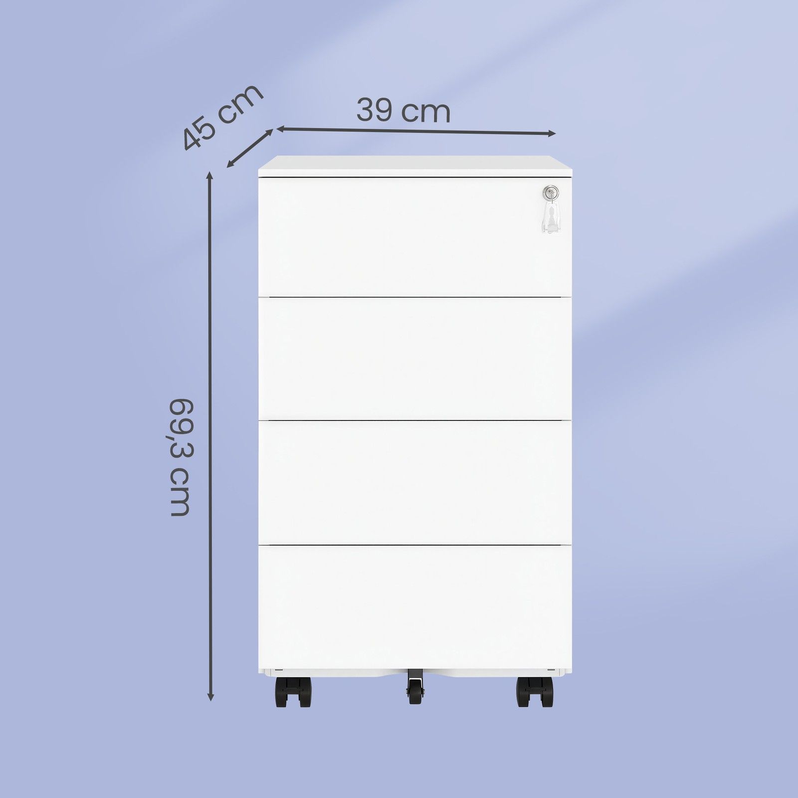 WINDLOWE 4 Drawer Lockable Mobile Filling Cabinet - White