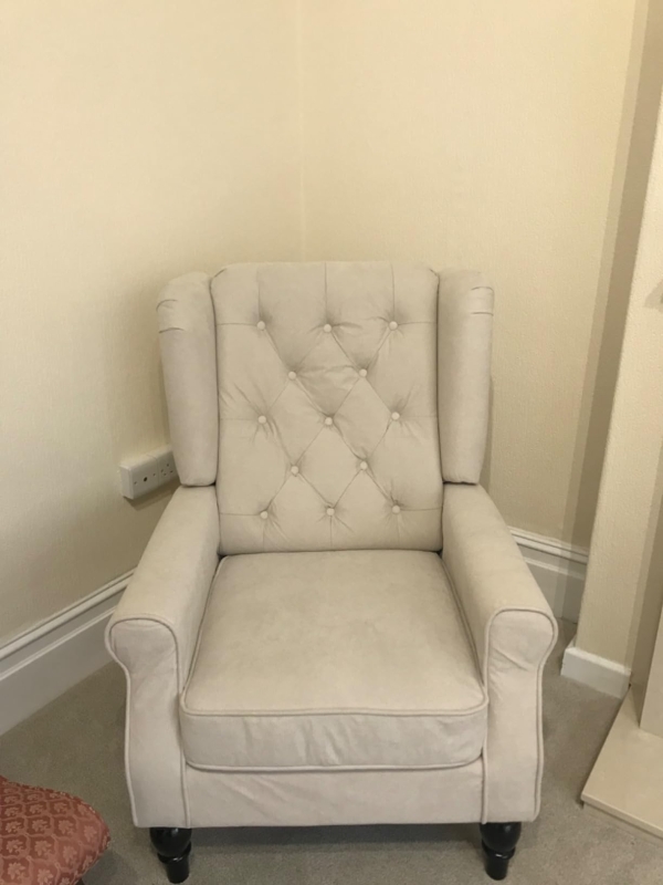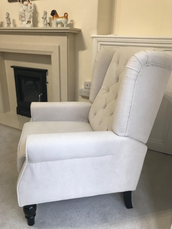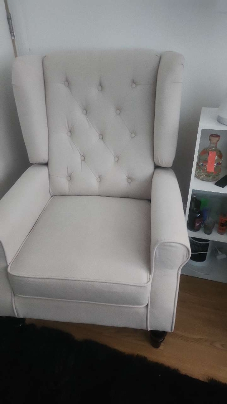 Wingback Accent Chair Button Tufted Upholstered for Living Room - Cream White