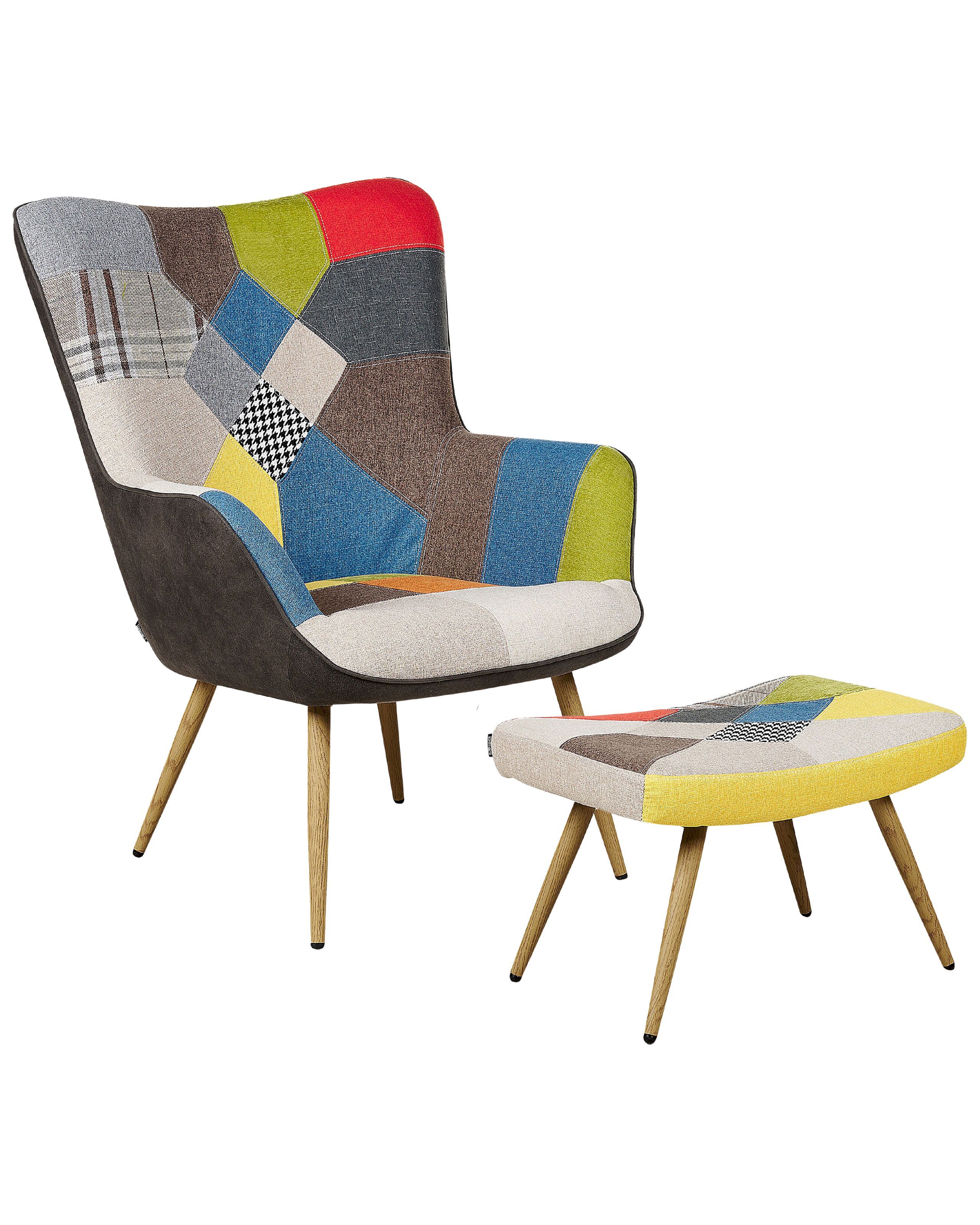 Wingback Chair with Footstool Patchwork Multicolour VEJLE II