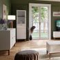 WOFUS Display Cabinet with 1 Door 1 Drawer and 1 Glass Door in Light Grey and Oak inc LED Lighting