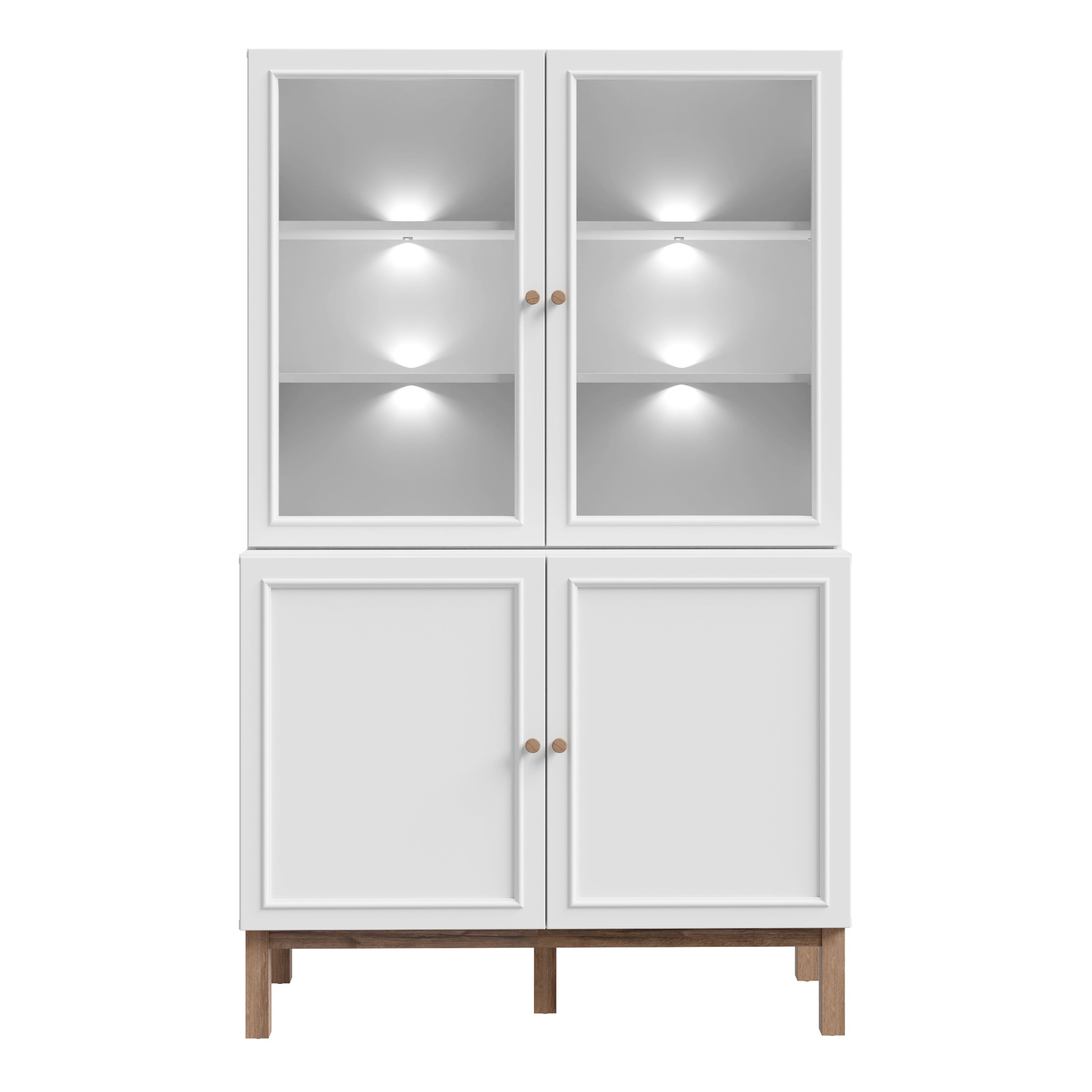 WOFUS Display Cabinet with 2 Doors and 2 Glass Doors in Light Grey and Oak inc LED Lighting