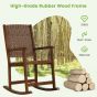 Wood Rocking Chair with PU Seat and Rubber Wood Frame for Porch Backyard Balcony-Brown