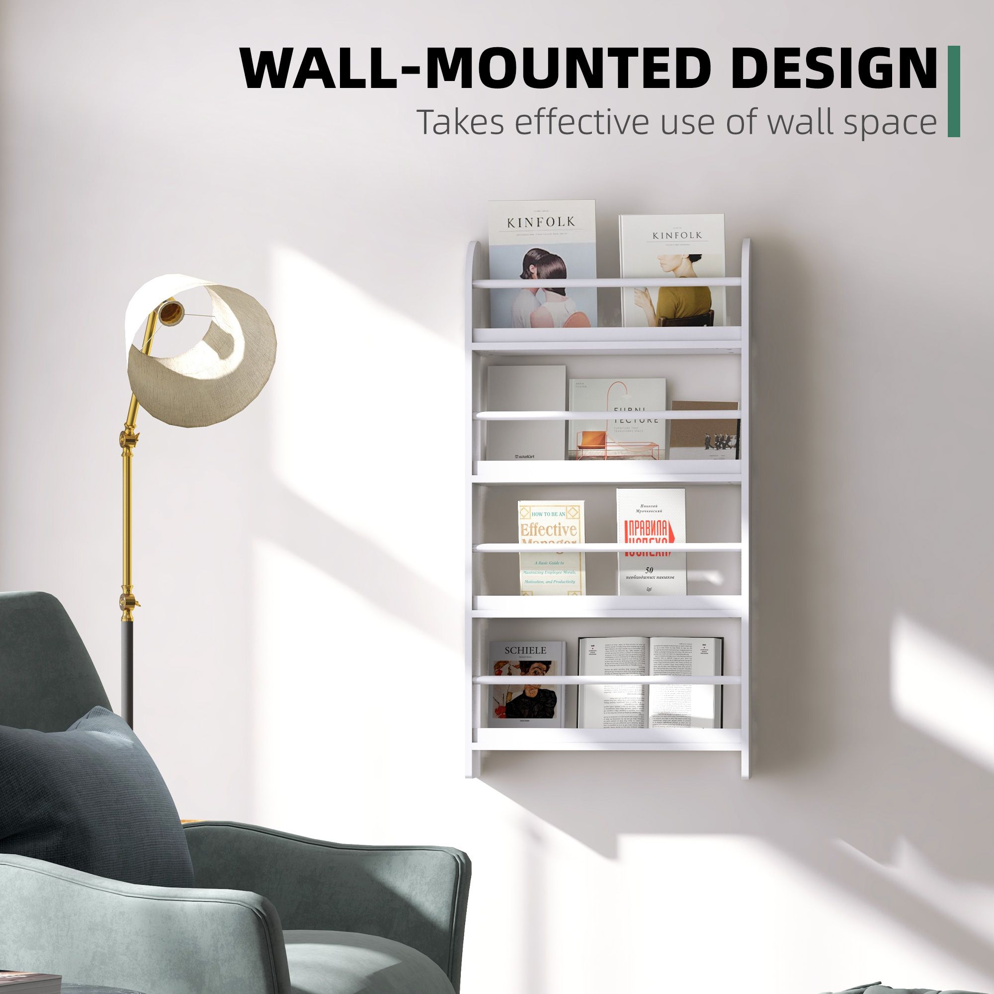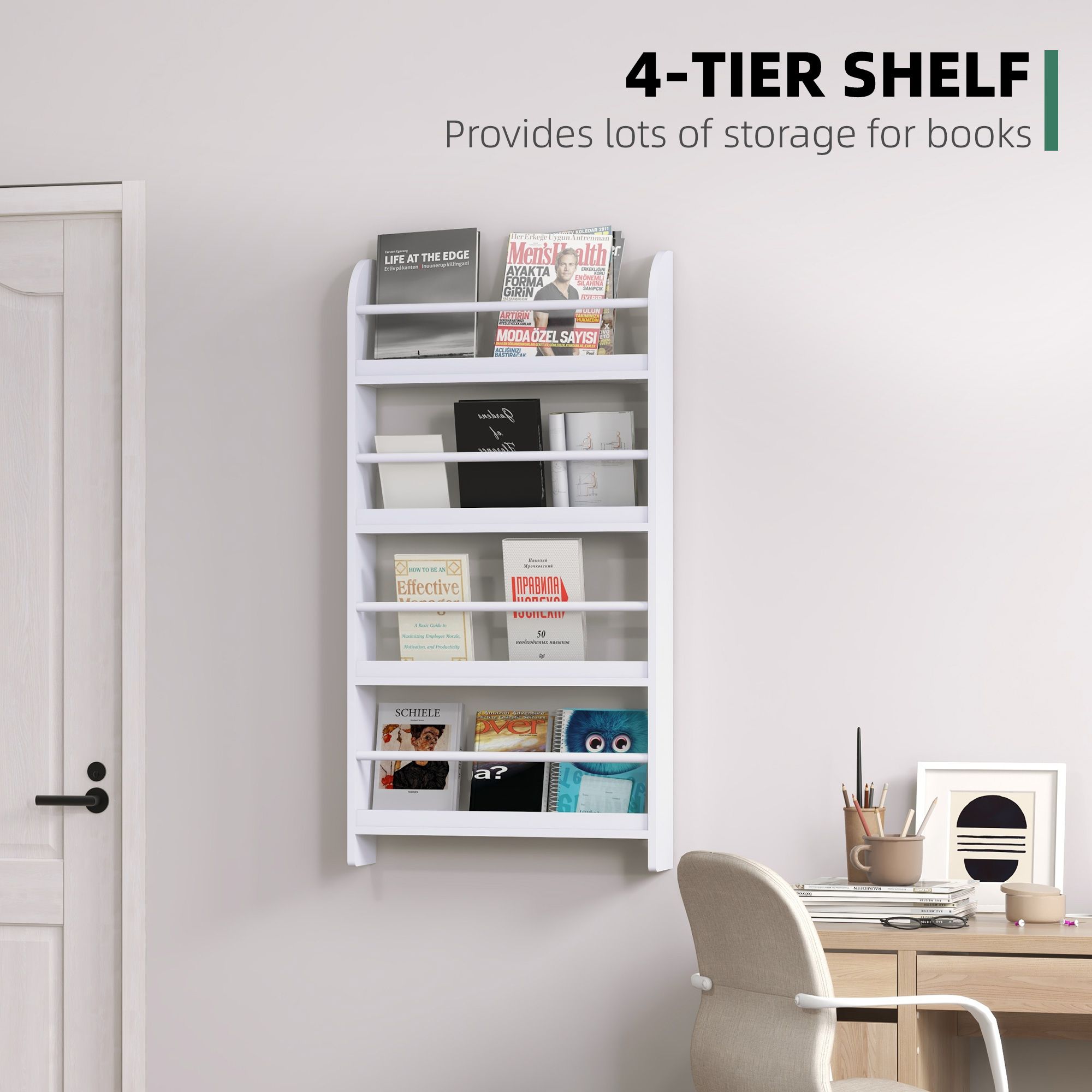 Wood Wall/Standing Magazine Holders Book Rack Shelf 4 Tiers Space Saving Design Water Resist Home Office Decoration