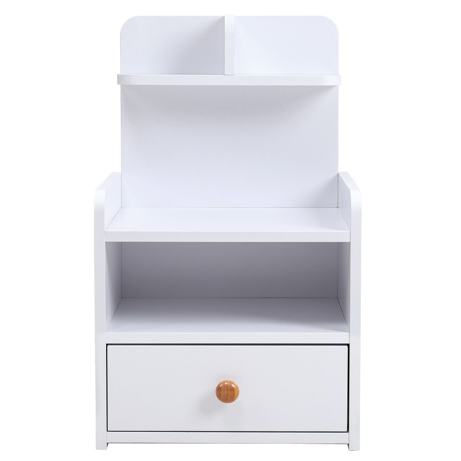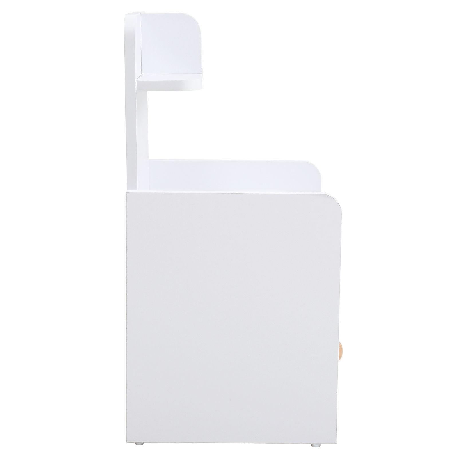 Wooden 1-Drawer Bedside Table Nightstand with a Shelf, White