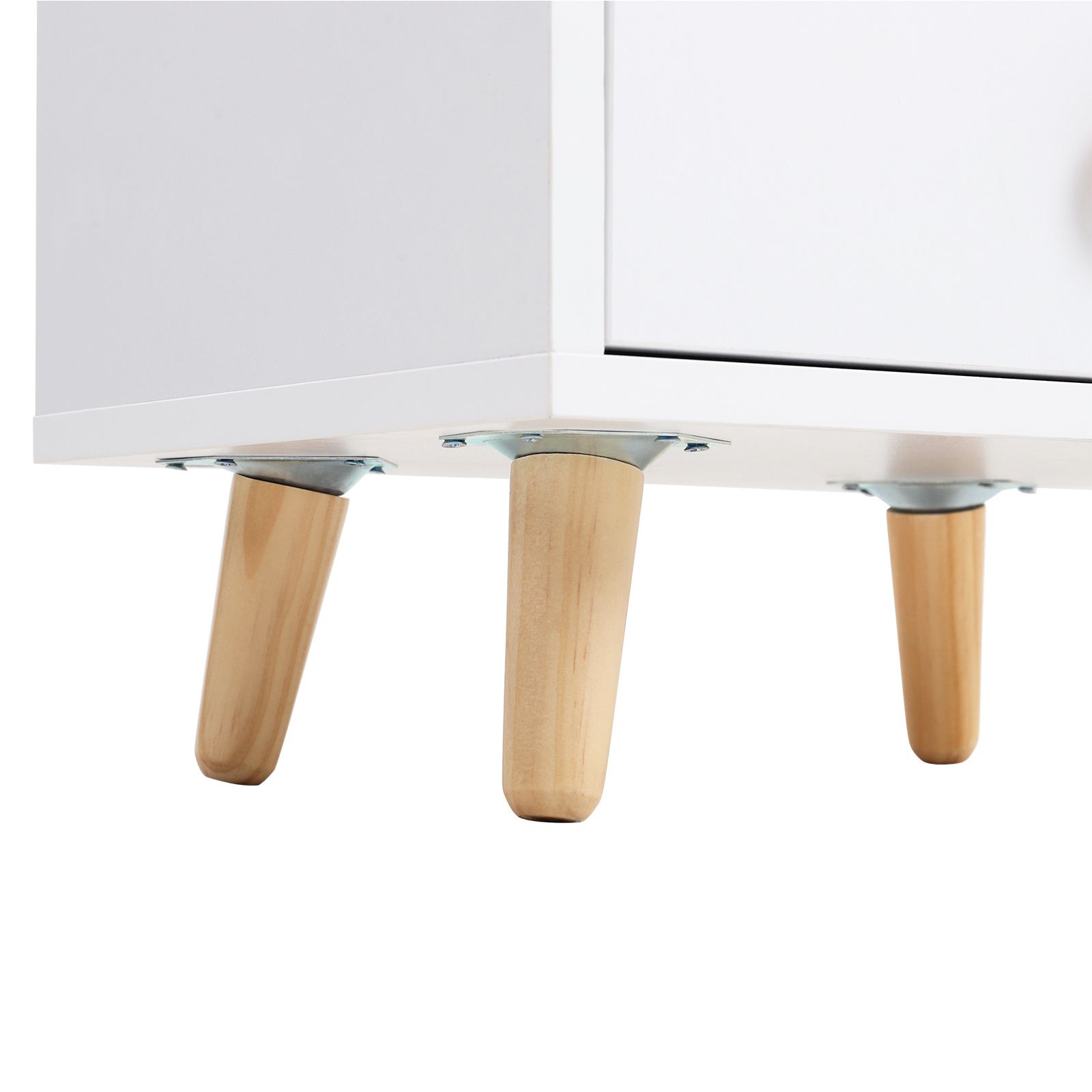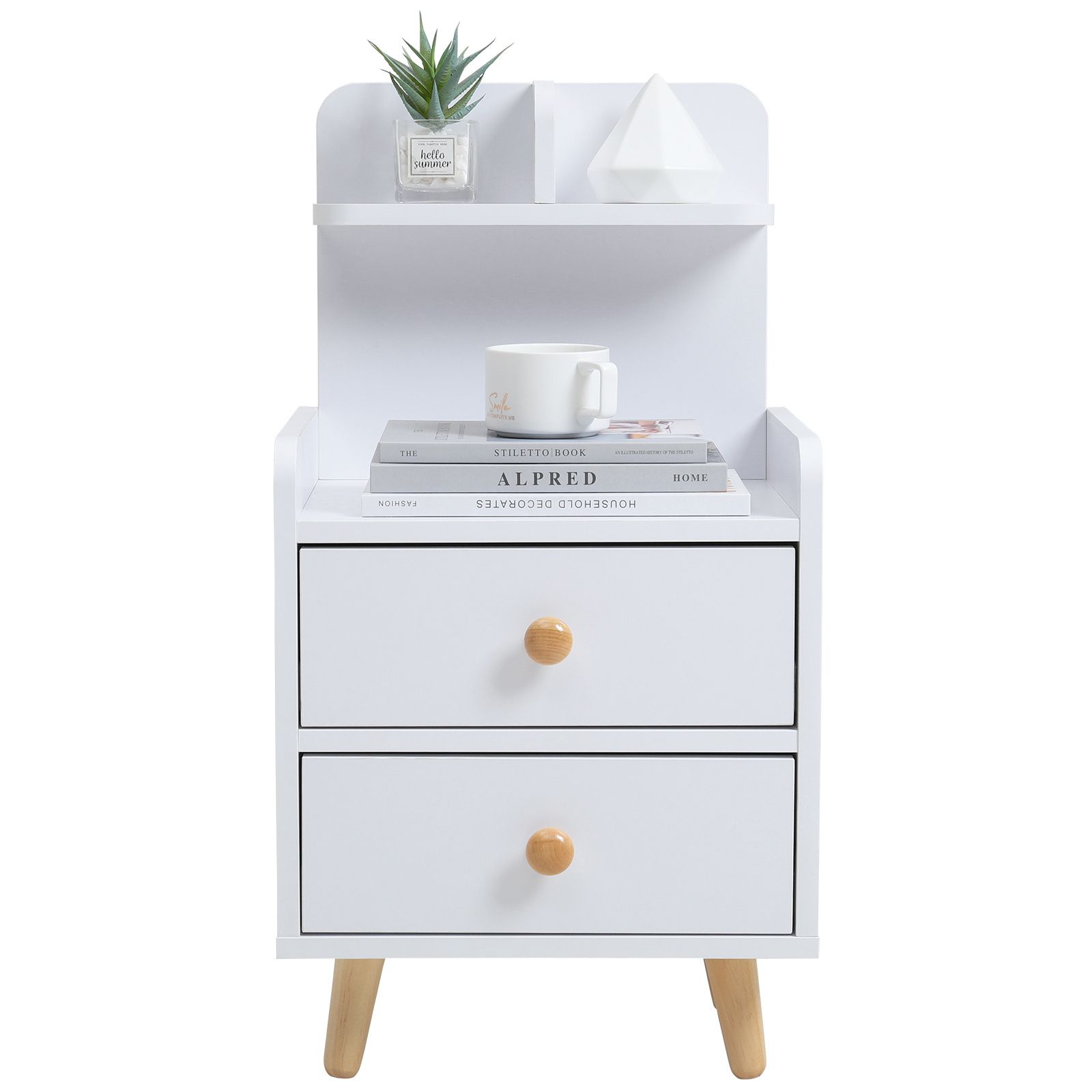 Wooden 2-Drawer Bedside Table Nightstand with a Shelf and Wooden Legs, White