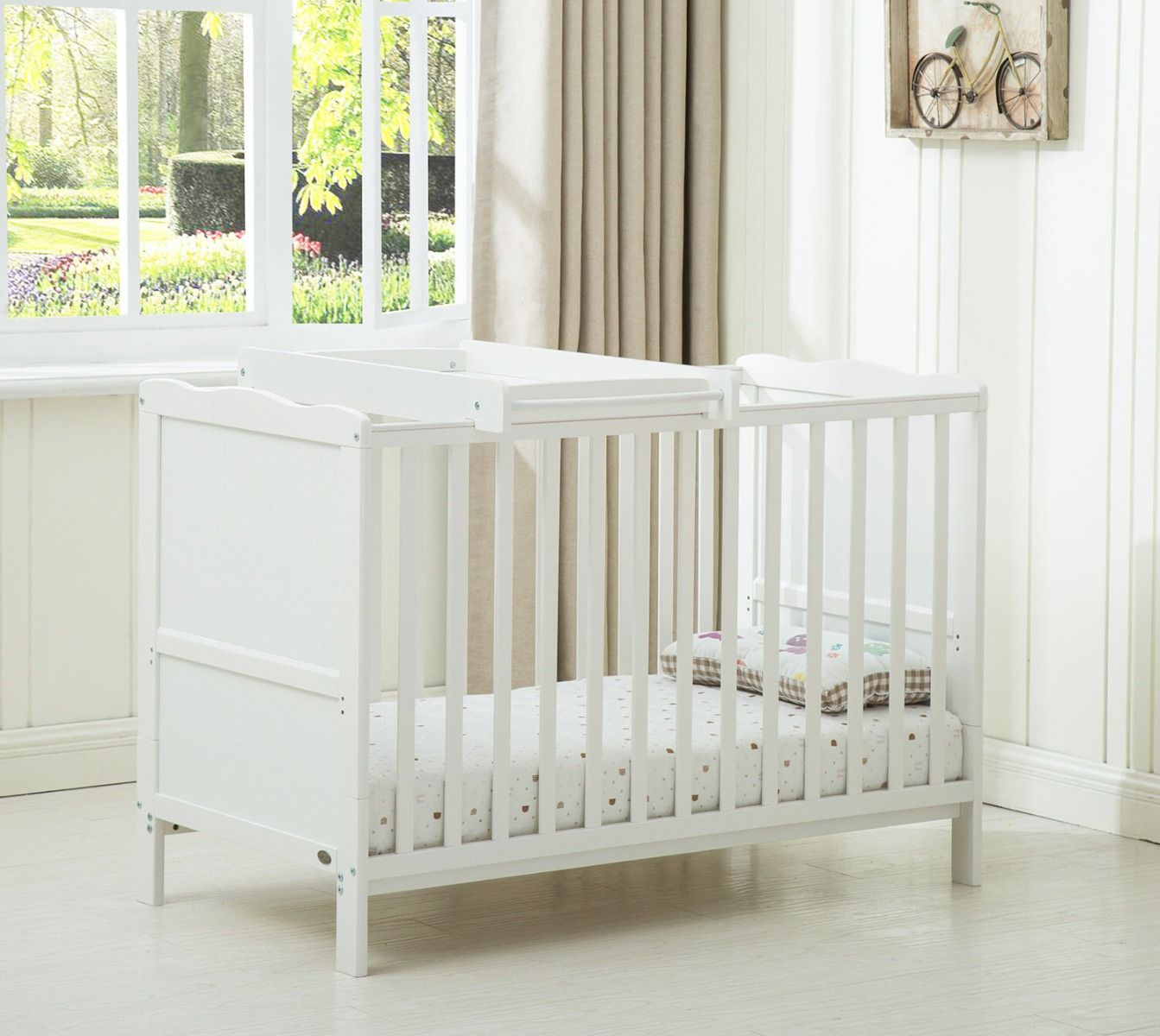 Wooden Baby Cot Bed with Top Changer & Water repellent Mattress - White