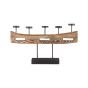 Enhance your surroundings with this industrial and urban-inspired candle holder. Fabricated from solid pine wood, it has a sturdy black-finished base, a wood stained top with 4 rounded metal uprights to hold the candles in place. This piece would be a stylish addition to any living area, mantelpiece, bedroom or bathroom. Details: Color: Light Wood, Black. Main material: Pine Wood. Additional material: Metal. Weight: 2 Assembly: Does Not Require Assembly Wood type: Pinus massoniana