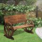 Wooden Cart Wagon Wheel 2 Seater Garden Bench Outdoor Chair Rustic High Back Loveseat Burnt Stained