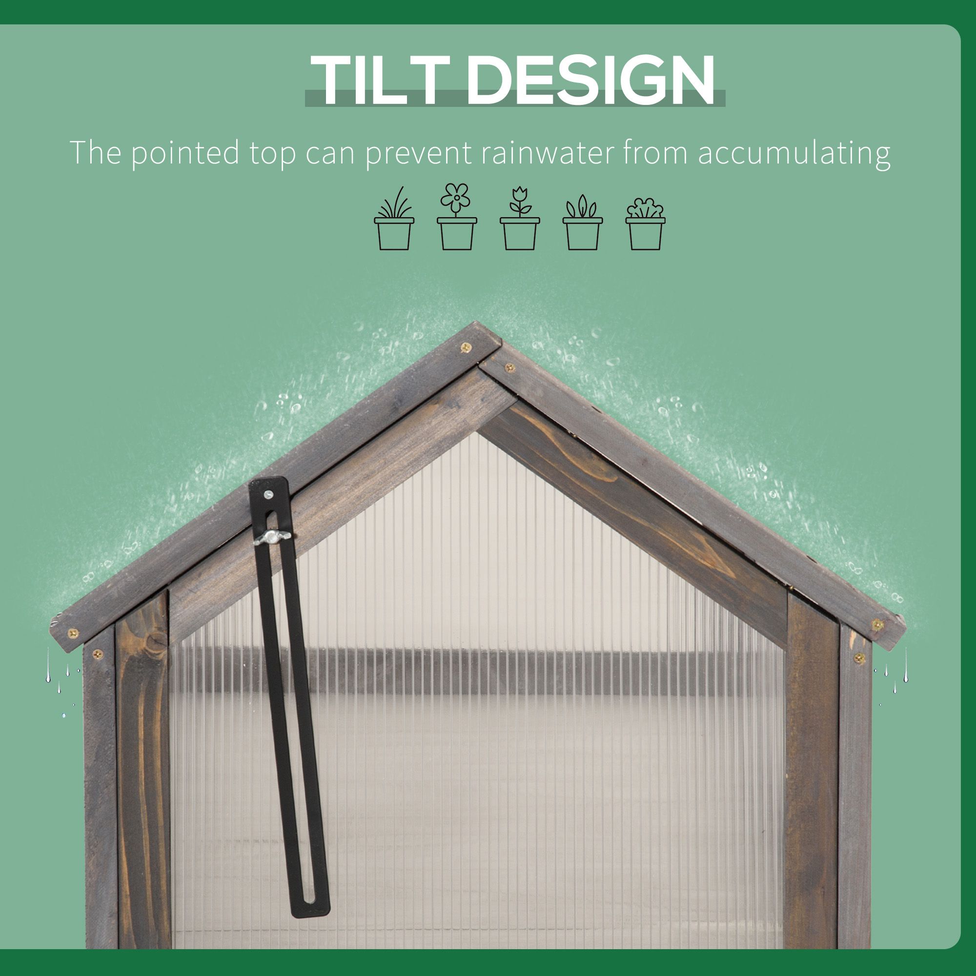 Wooden Cold Frame Greenhouse Garden Polycarbonate Grow House with Openable Top for Flowers, Vegetables, Plants, 90 x 52 x 50cm, Grey