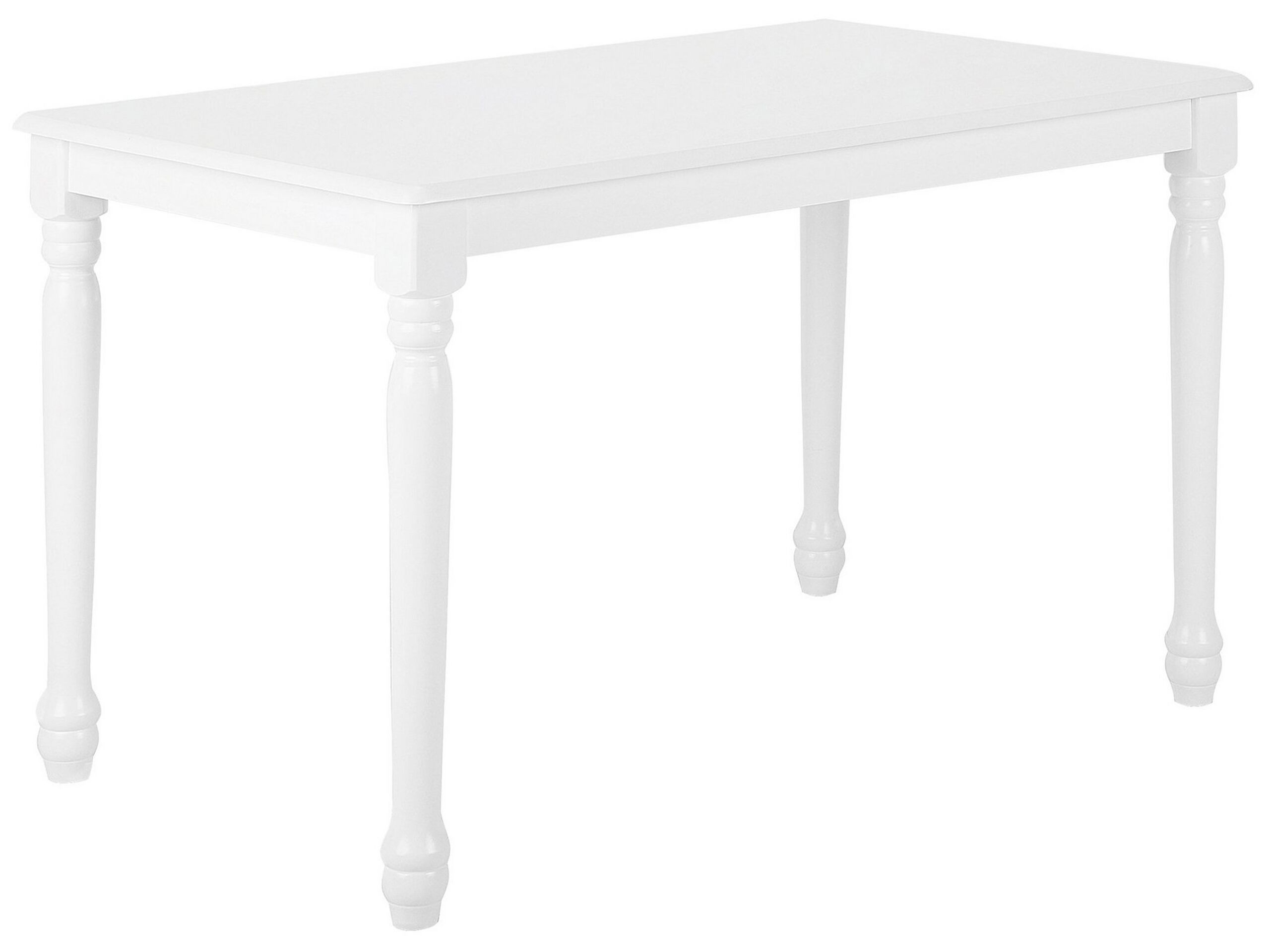 A dining table in an utterly charming, vintage style. It gives any dining space or kitchen a homely feel, thanks to its cottage house-inspired form and a lovely white finish. The Solid wood legs feature a classic, carved shape with rounded elements to create a soft complementing touch to the regular, rectangular table top, which easily accommodates up to 6 guests. Details: Color: White. Main material: MDF. Additional material: Rubberwood. Weight: 26 Capacity: 4 People Assembly: Legs to be Fitted Wood type: Hevea brasiliensis Wood Origin: Malaysia Weight Capacity: 100 Legs Height: 73