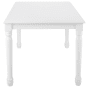 A dining table in an utterly charming, vintage style. It gives any dining space or kitchen a homely feel, thanks to its cottage house-inspired form and a lovely white finish. The Solid wood legs feature a classic, carved shape with rounded elements to create a soft complementing touch to the regular, rectangular table top, which easily accommodates up to 8 guests. Details: Color: White. Main material: MDF. Additional material: Rubberwood. Weight: 53 Capacity: 6 People Assembly: Legs to be Fitted Wood type: Hevea brasiliensis Wood Origin: Malaysia Weight Capacity: 100 Legs Height: 73