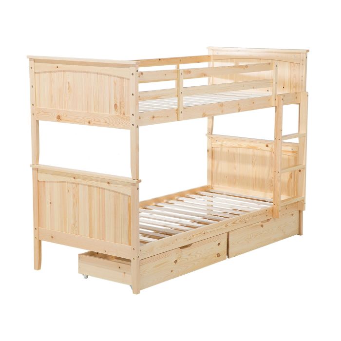 Wooden EU Single Size Bunk Bed with Storage Light Wood ALBON