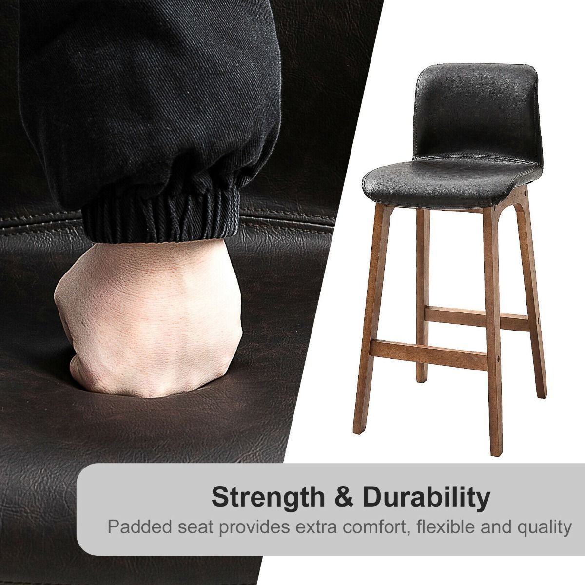 Let sleek and executive style make an impact beyond the office with these bar stools. A set of two to create a matching look in your home, each chair is built with a solid and strong beech wood frame, crafted into a tall design with a bar on the bottom to place your feet.