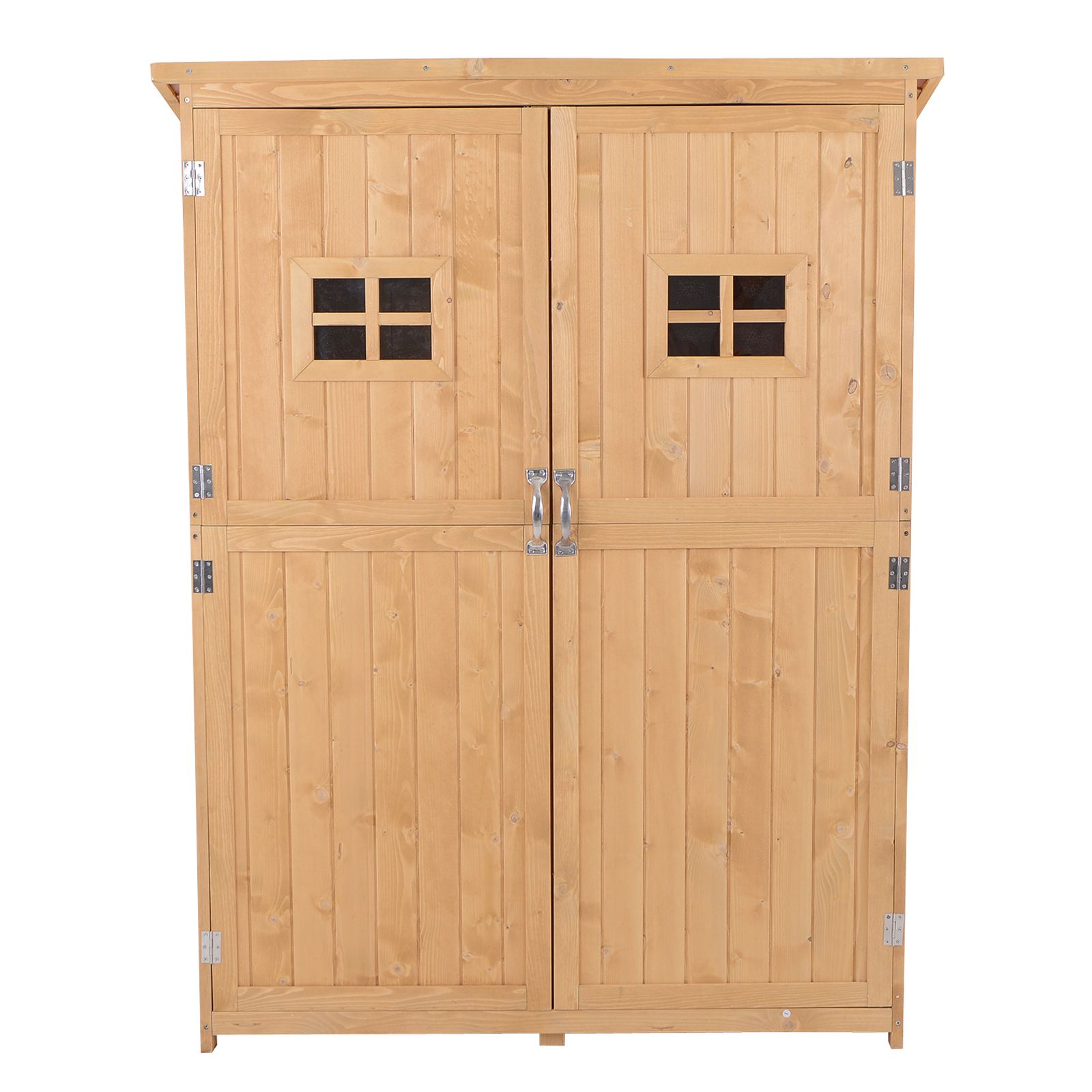 Wooden Garden Storage Shed Tool Cabinet Organiser with Shelves, Two Windows, 127.5 x 50 x 164 cm, Natural