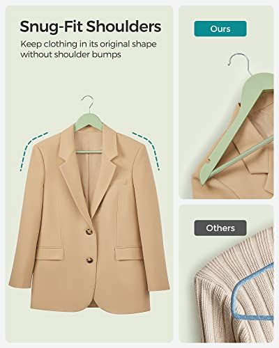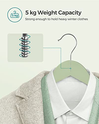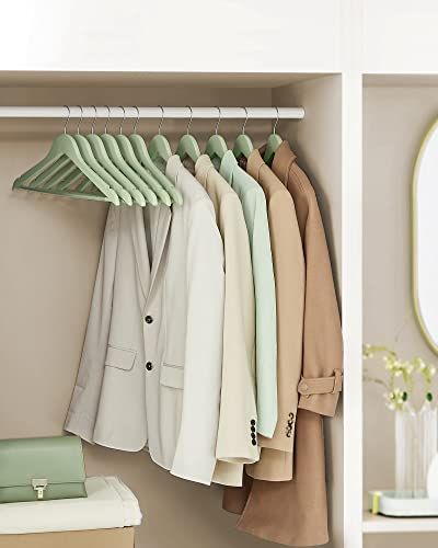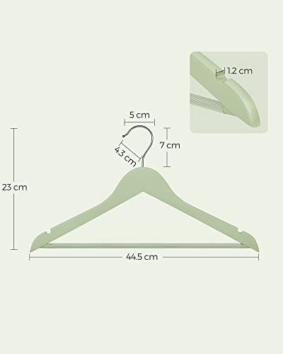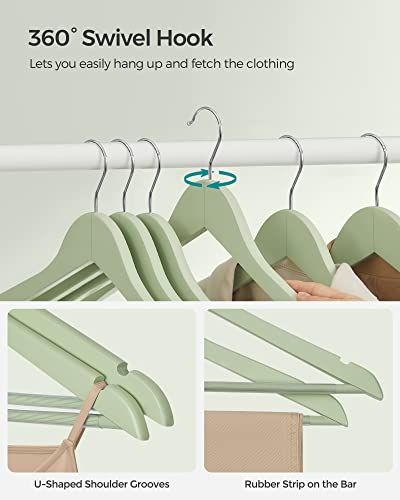 Wooden Hangers, Set of 20, Coat Hangers, Clothes Hangers, with Shoulder Notches, Anti-Slip Trousers Bar, 360° Swivel Hook, for Suits, Shirts, Coats, Light Green and Silver CRW001H02
