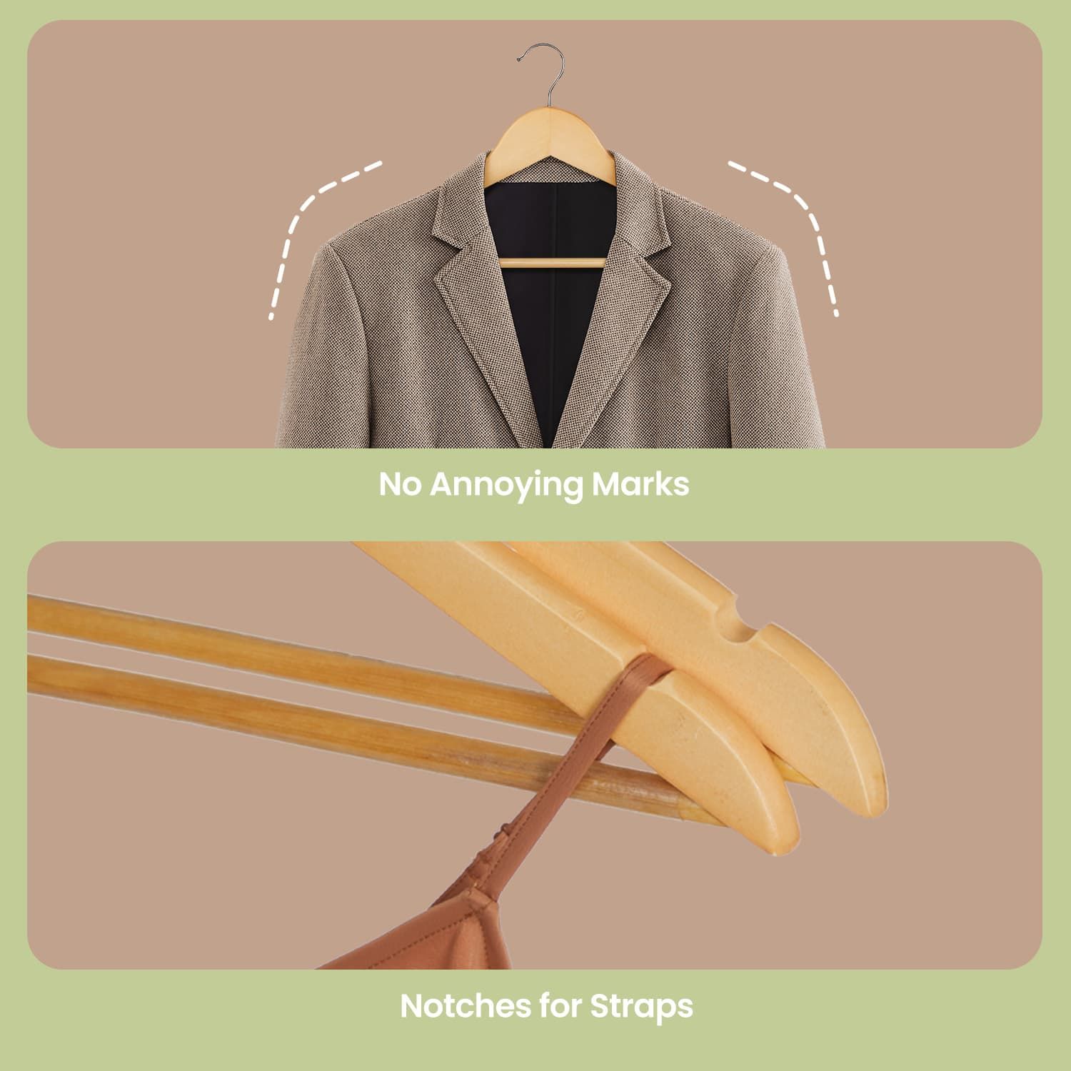 Wooden Hangers - SOLRO Solid Wood Set of 10 with Shoulder Groove - Natural