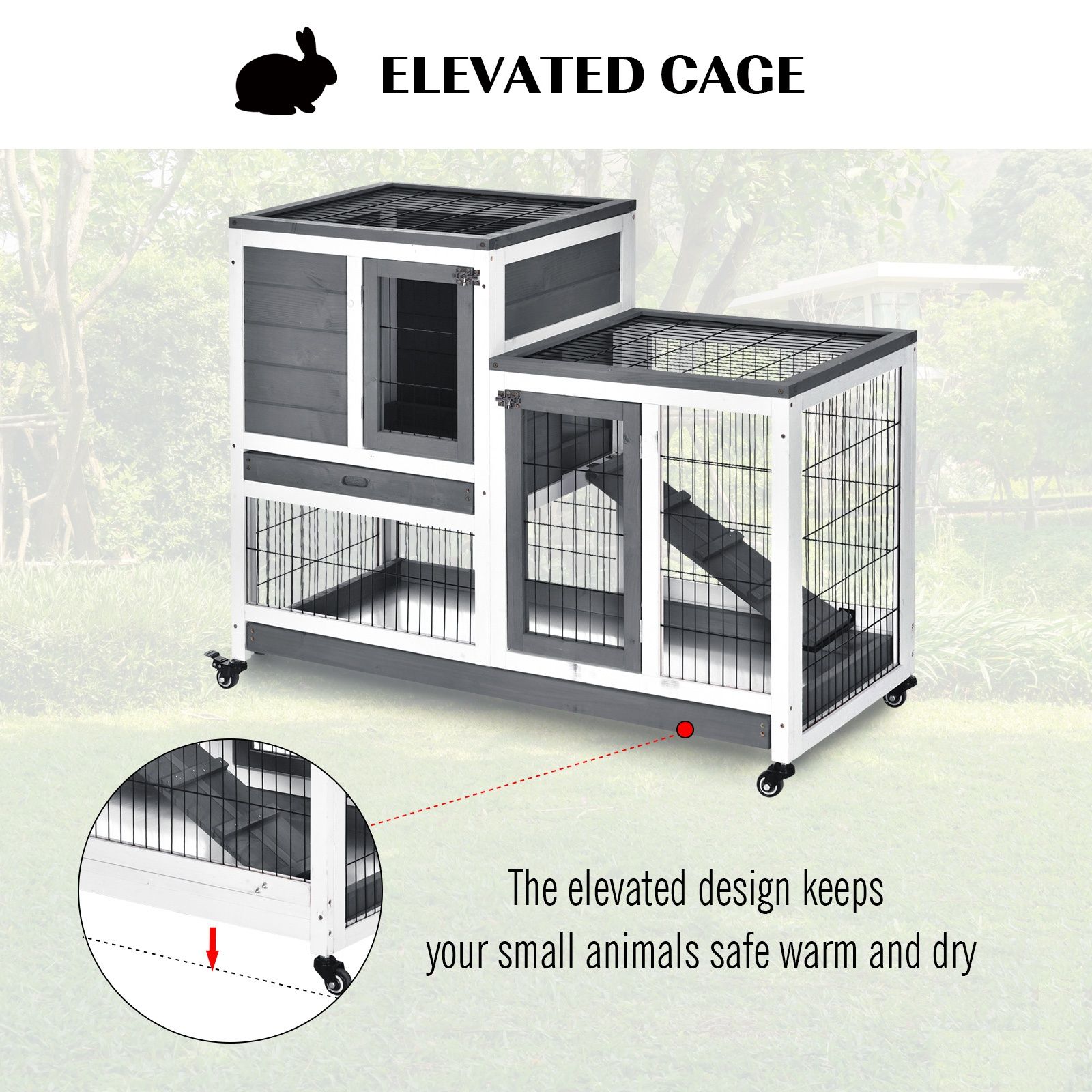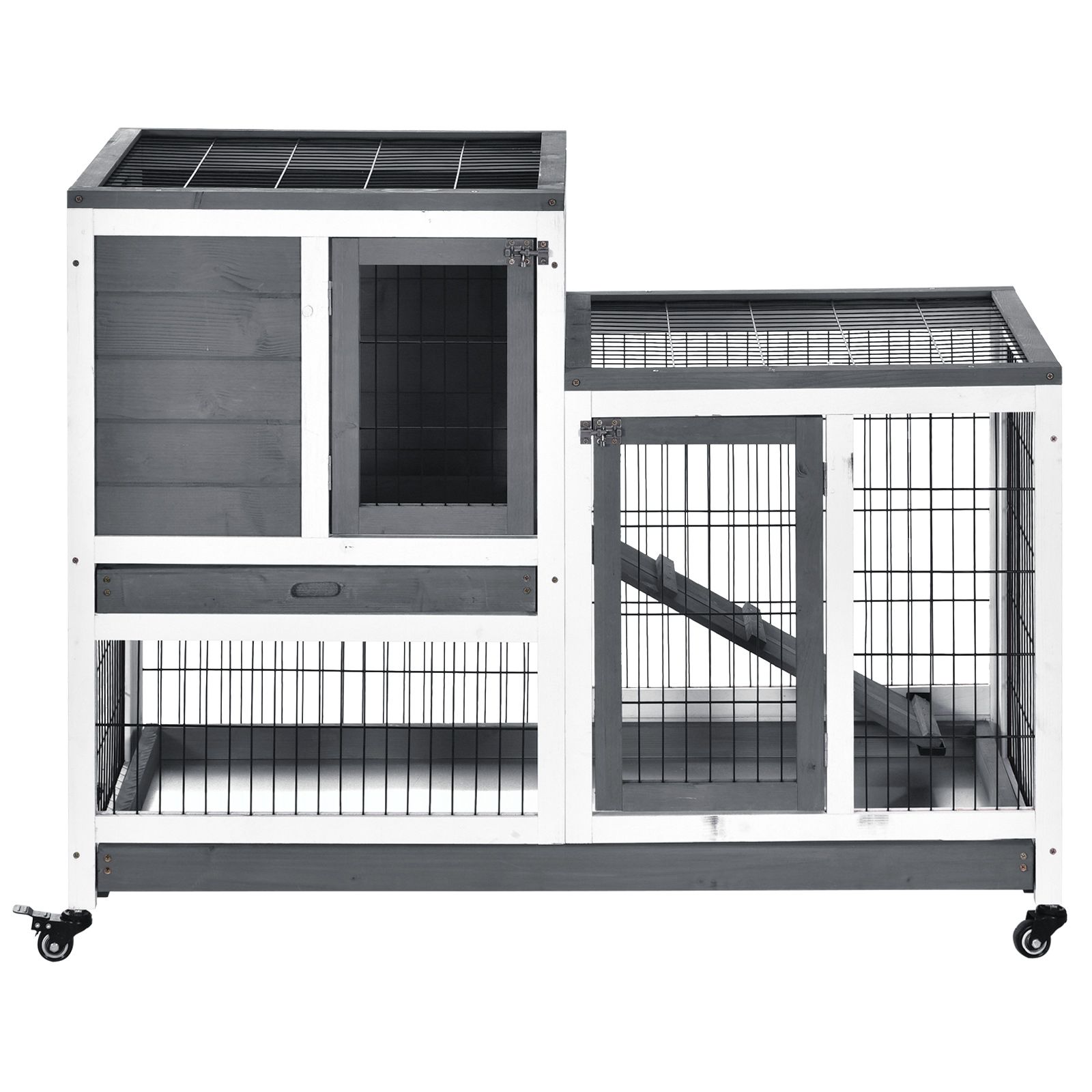 Wooden Indoor Guinea Pigs Hutches Elevated Cage Habitat with Enclosed Run with Wheels, Ideal for Rabbits and Guinea Pigs, Grey and White