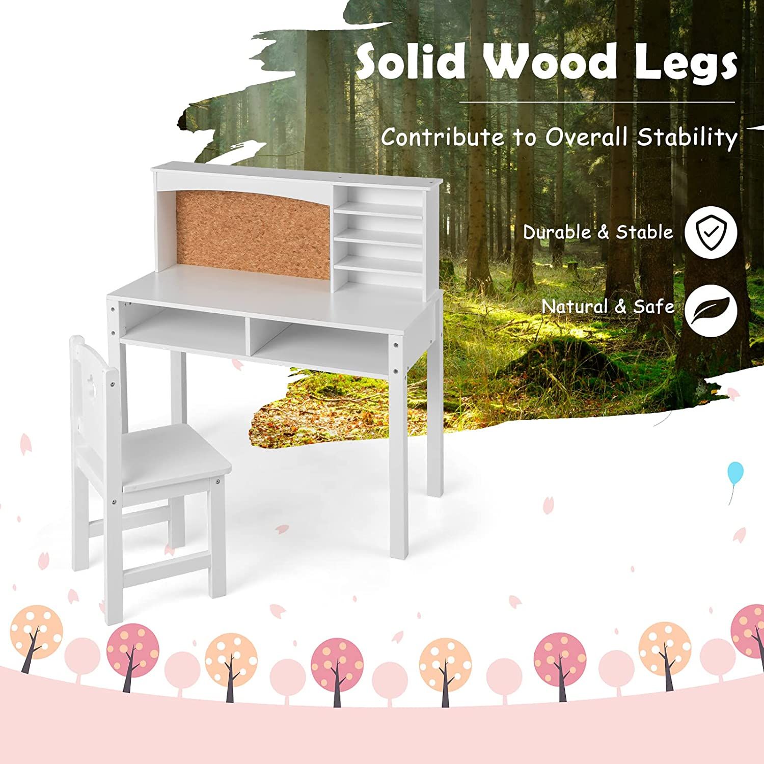 Wooden Kids Desk and Chair Set with Hutch for Studying and Reading-White