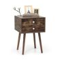 Bedside Table - SHAW 2 Drawer Nightstand Rustic Brown 40cm