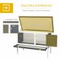 This deluxe wooden rabbit hutch from is a perfect mix of safety and freedom for your furry friends and offers all the comforts of home. A cozy, house-style indoor space offers ample space to rest and play. Lockable door for easy in and out, also ensures safety. Slide-out tray and openable roof offer easy access for cleaning, feeding and other routine tasks. Constructed of natural fir wood coated with water-based paint and tilt asphalt roof included to against weather elements.