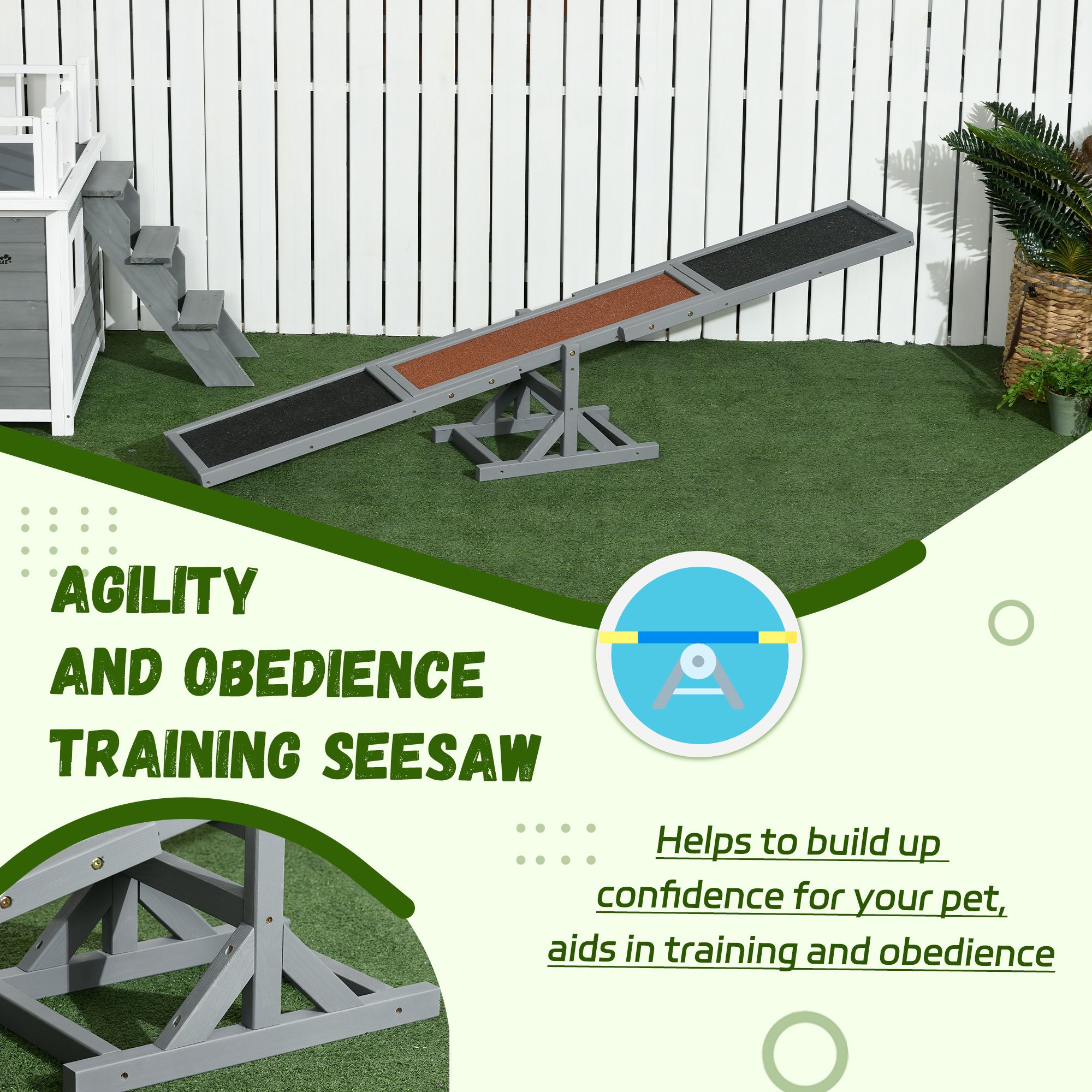 Wooden Pet Seesaw for Big Dogs, Agility Training Equipment for Dogs with Anti-Slip Surface, 180 x 30 x 30 cm, Grey
