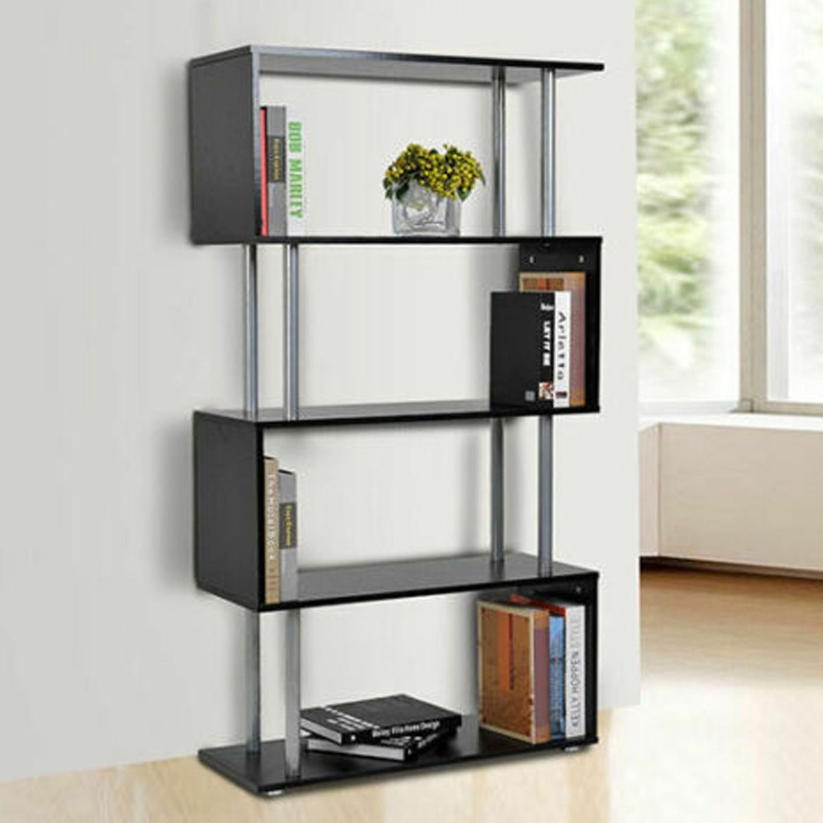 This S shape shelf can be used as a bookshelf or cupboard cabinet in your home, office and study. Made of high quality particle board, surface is matt finish effect carcass, made from melamine, water and scratch resistant.