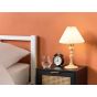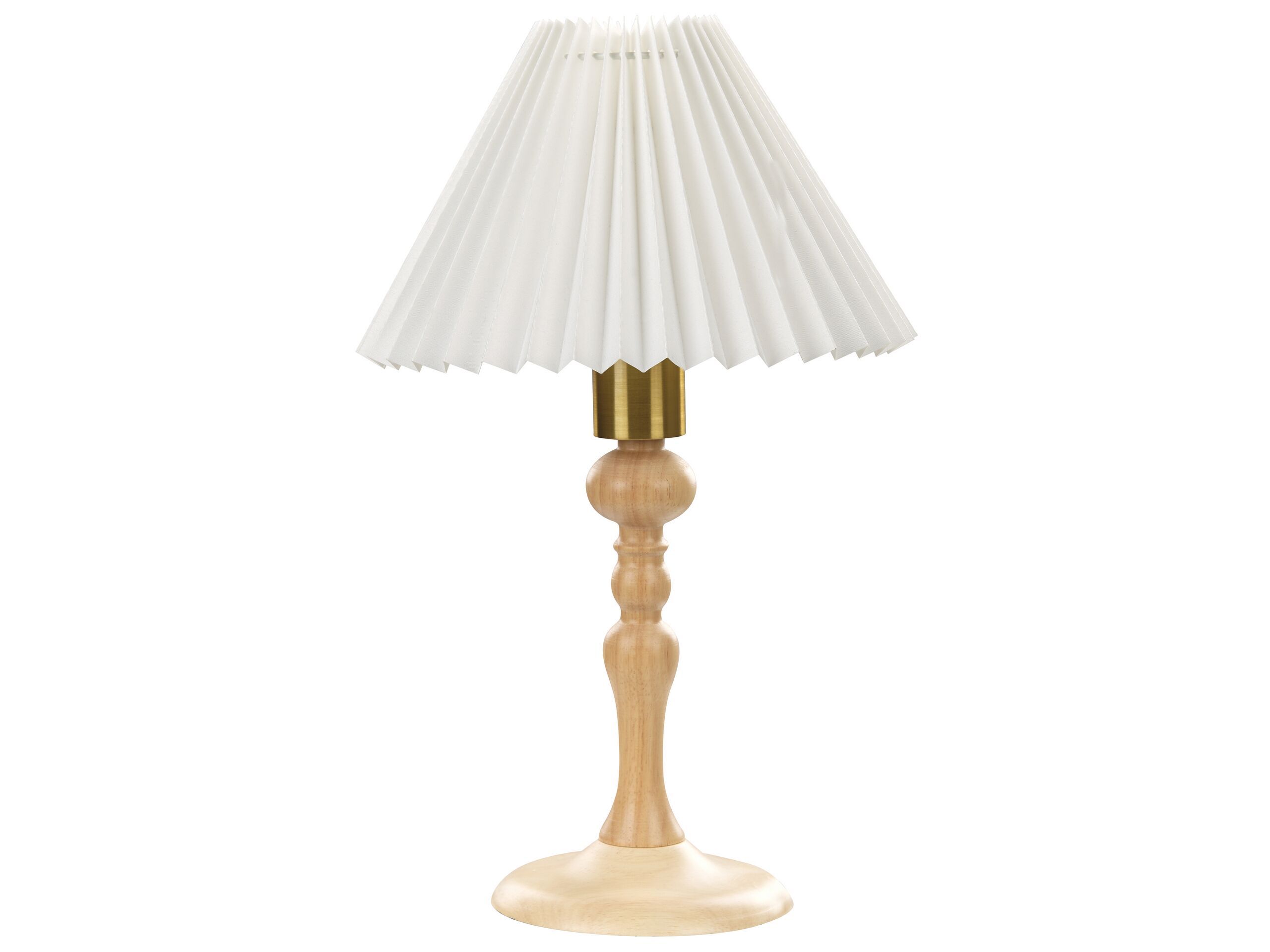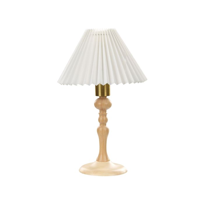 Elevate your bedroom's ambience with this exquisite table lamp. Crafted from natural oak with a touch of golden glamour, its graceful light wood base complements a pristine white cotton shade, casting a warm and inviting glow. Illuminate your nights with timeless elegance. Details: Color: White, Light Wood, Gold. Main material: Oak Wood. Additional material: Cotton, Iron. Material Composition: 100% Cotton Weight: 1 Assembly: Does Not Require Assembly Wood type: Quercus variabilis Wood Origin: Thailand