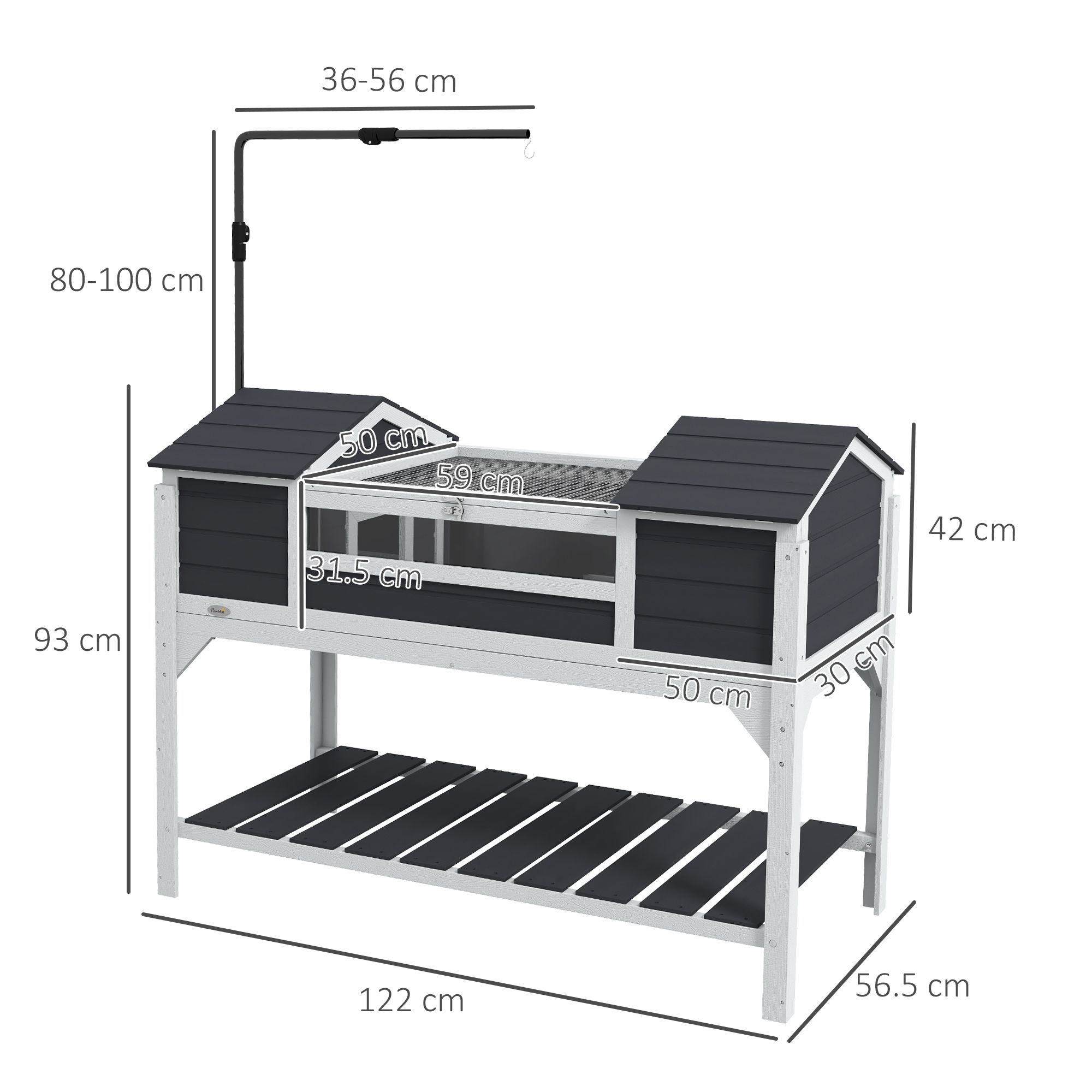 Wooden Tortoise Enclosure with Adjustable Lamp Holder, Openable Lid, Dual Main Houses, Storage Shelf, Fixed Tray - Grey