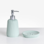 Organise your bathroom with this stylish set of 5 handy accessories, designed to bring both function to your space. The set includes a toilet brush, soap dish, tumbler, toothbrush holder, and a lotion or soap dispenser everything you need to complete your interior. Crafted from quality polyresin with a subtly fluted surface, each piece feels sturdy and well made.
