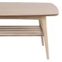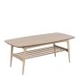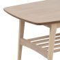 Invite timeless elegance into your living space with this rectangular coffee table, which boasts a white pigmented oiled oak veneer top. The matching shelf and base, offer both style and substance, creating a harmonious and functional centerpiece.